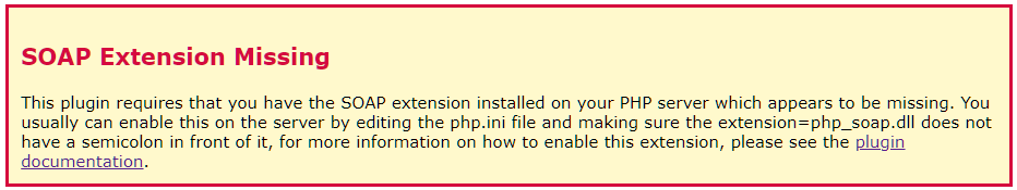 • SOAP Extension must be installed and enabled within PHP, if it is not, see the PHP SOAP installation instructions below, if your are not sure, once you activate the plugin, a message will be displayed if it is not detected
