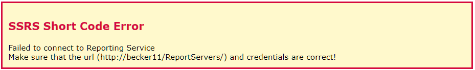 In the event that the report server is not accessible due to connectivity issues or authentication problems, the following message will be displayed.