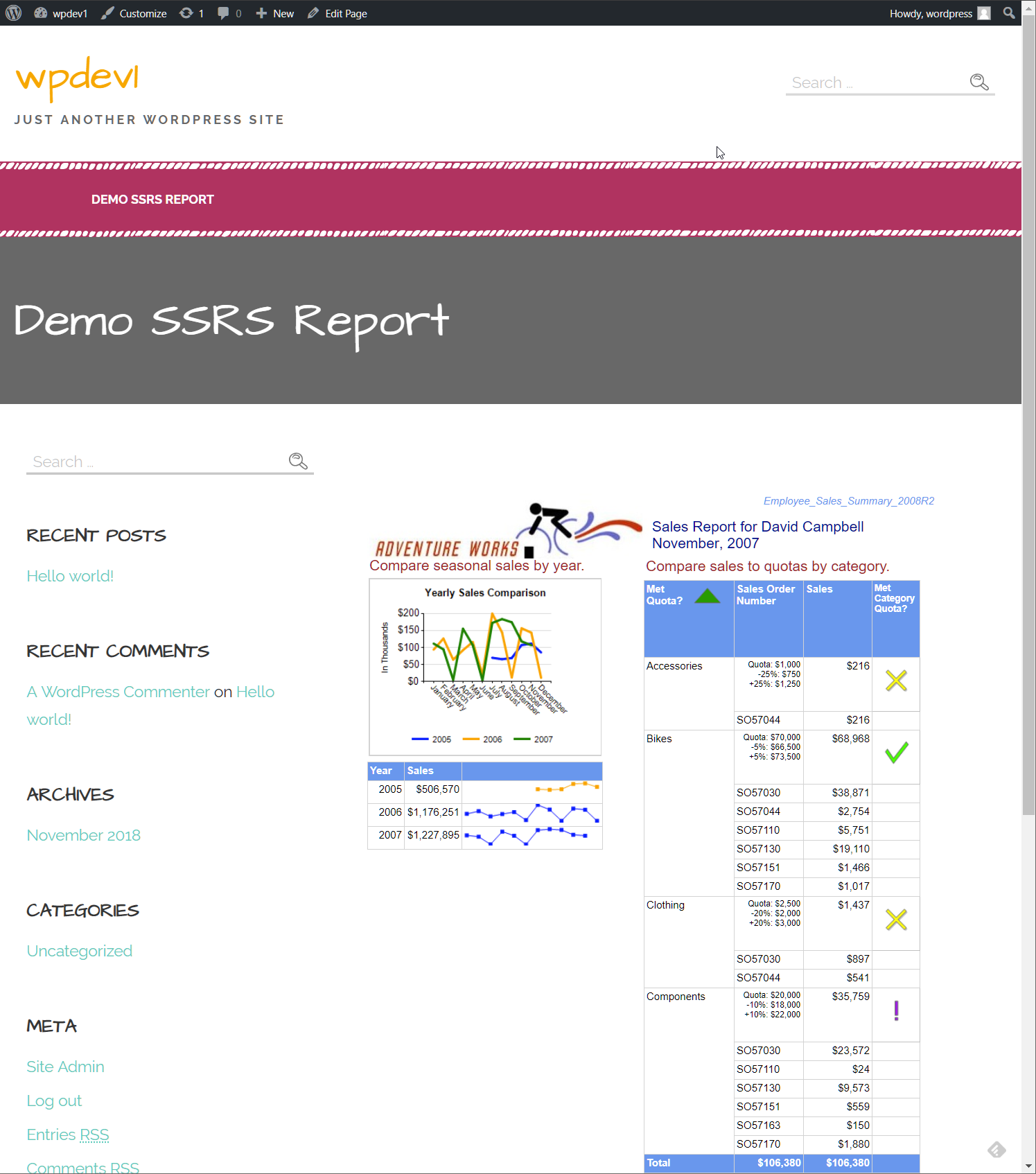 • Support for rendering SSRS reports within WordPress as HTML