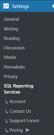 Once the module is installed, you can access the settings for the plugin to configure the report server.  The settings can be accessed from the site admin section, click the "Settings" menu and then the "SQL Reporting Services" option shown in the following screenshot.